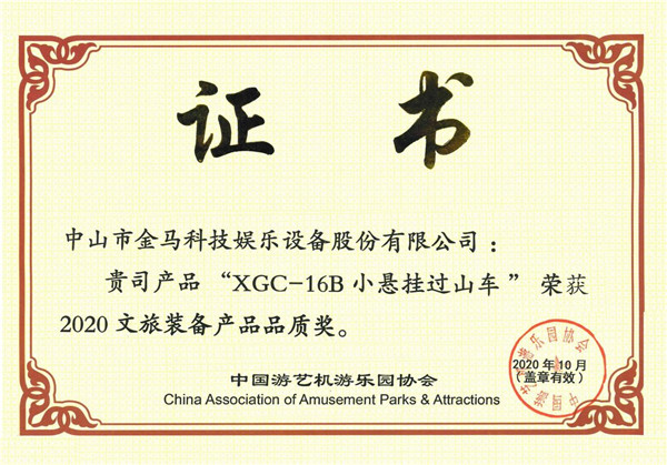 同時,“JL-20A激流勇進”和“XGC-16B小懸掛過山車”分獲“文旅裝備產品創新獎”和“文旅裝備產品品質獎”。
