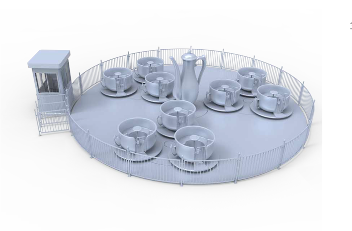 轉轉杯設備是由軌道、大盤、小盤及杯體組成,美食主題外觀,乘客坐在杯中體驗多重復合轉動所帶來的旋轉樂趣。