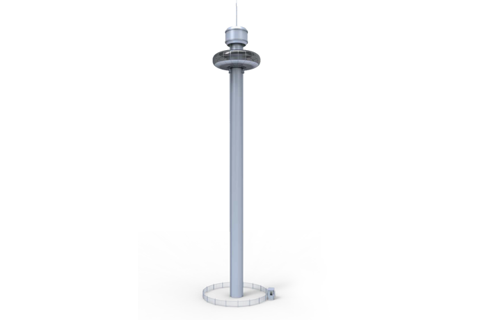 觀景塔可容納60人,運營高效。塔體配備配重裝置,抵消艙體大部分重量,降低提升所需功率,從而達到降低運營成本的效果。塔底配置緩沖裝置,為乘客提供輕緩的乘坐體驗,讓乘客在舒適的環境中飽覽周邊美景