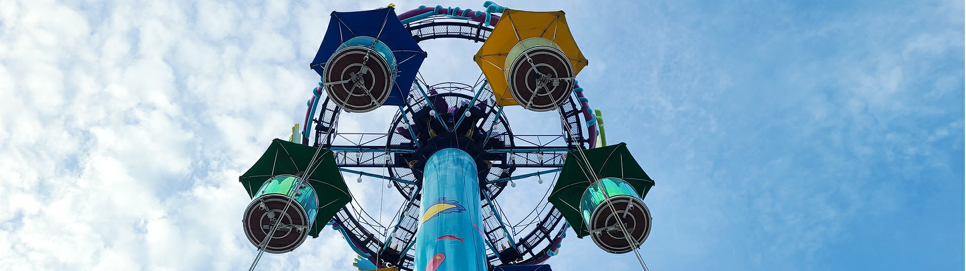 跳傘塔是一項使乘客吊籃沿豎直方向做上下往復運動的設備。外觀猶 如打開的傘體,絢爛多彩,使乘客在吊籃內愜意欣賞周邊風景。