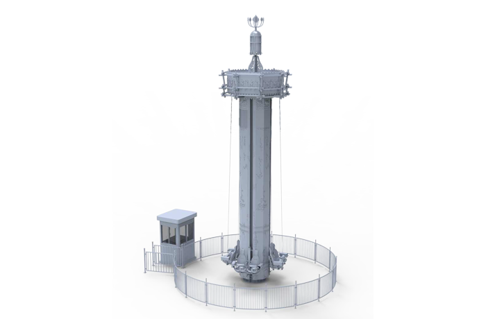 觀光塔在塔身緩慢旋轉運行時,座椅在乘客拉拽拉繩的操作下實現升降或停留,給游客一種攀爬向上的體驗。塔身快速下降時游客感受失重刺激,塔?停留半空時游客又能極目遠眺周邊美景。