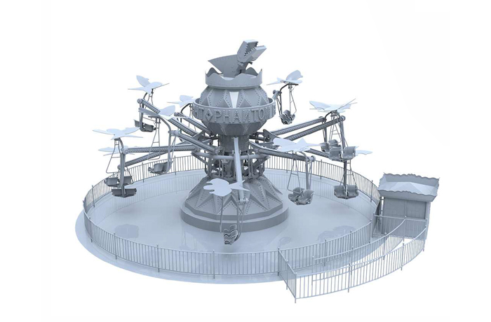 幻影飛行,以折紙風(fēng)車、千紙鶴和紙飛機系列為主題,讓人耳目一新的同時引起兒時回憶,引發(fā)共鳴。座艙能夠舒適的容納兒童和成人,擁有12個扶手,紙飛機底部擁有關(guān)于兒童主題涂鴉,乘客可以通過推拉他們面前的三?形控制桿控制紙飛機,此外中央液壓系統(tǒng)擁有保持平衡的功能,無論乘客如何控制紙飛機的運動,都能使其保持平衡飛行。
