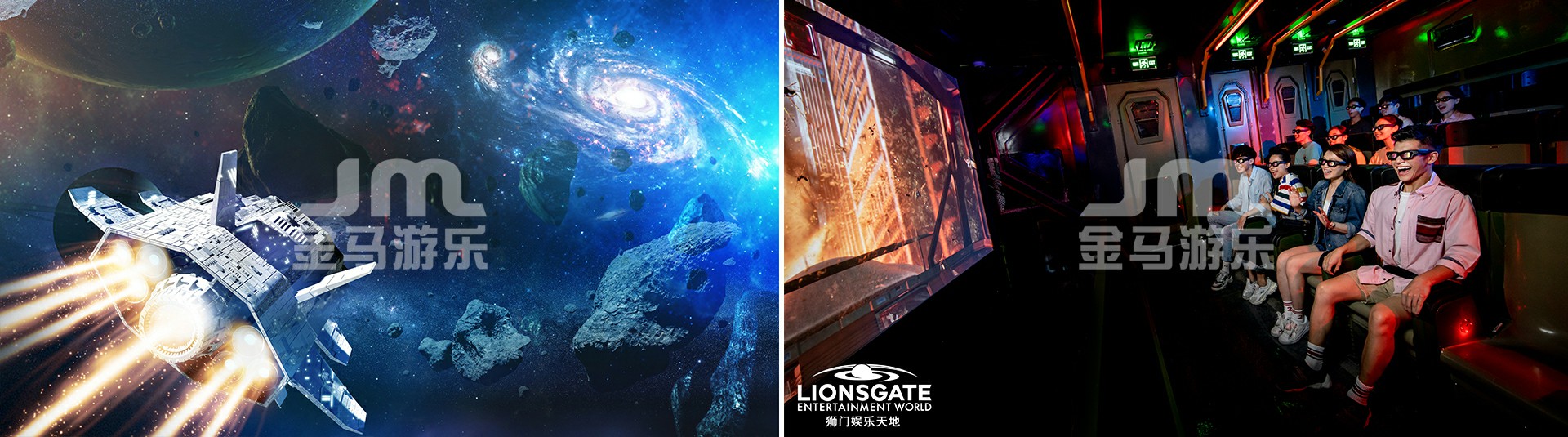 動感艙是30座的超大型封閉式六自由度動感體驗項目。乘客佩戴3D眼鏡,乘坐于科技感十足的大型機艙內,動感平臺配合生動有趣的電影情節,逼真地模擬出晃動、傾斜、下墜等動作,帶給乘客精彩刺激的全沉浸式觀感體驗