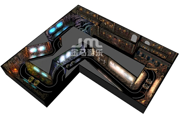 交互式黑暗乘騎游樂設備,是融合交互游戲、360度旋轉軌道車、主題景觀、多種特效等尖端技術于一體的室內體驗娛樂項目,讓乘客在逼真的虛擬場景中進行角色對抗,增加交互體驗。