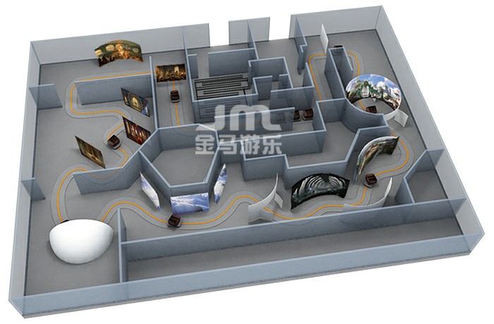 動感黑暗乘騎采用創新型六自由度動感騎乘設備,游客乘坐動感座艙穿梭由主題景觀、高清影片、機模、特效、音效等組成的不同故事場景,是擁有高沉浸感的體驗游樂項目。